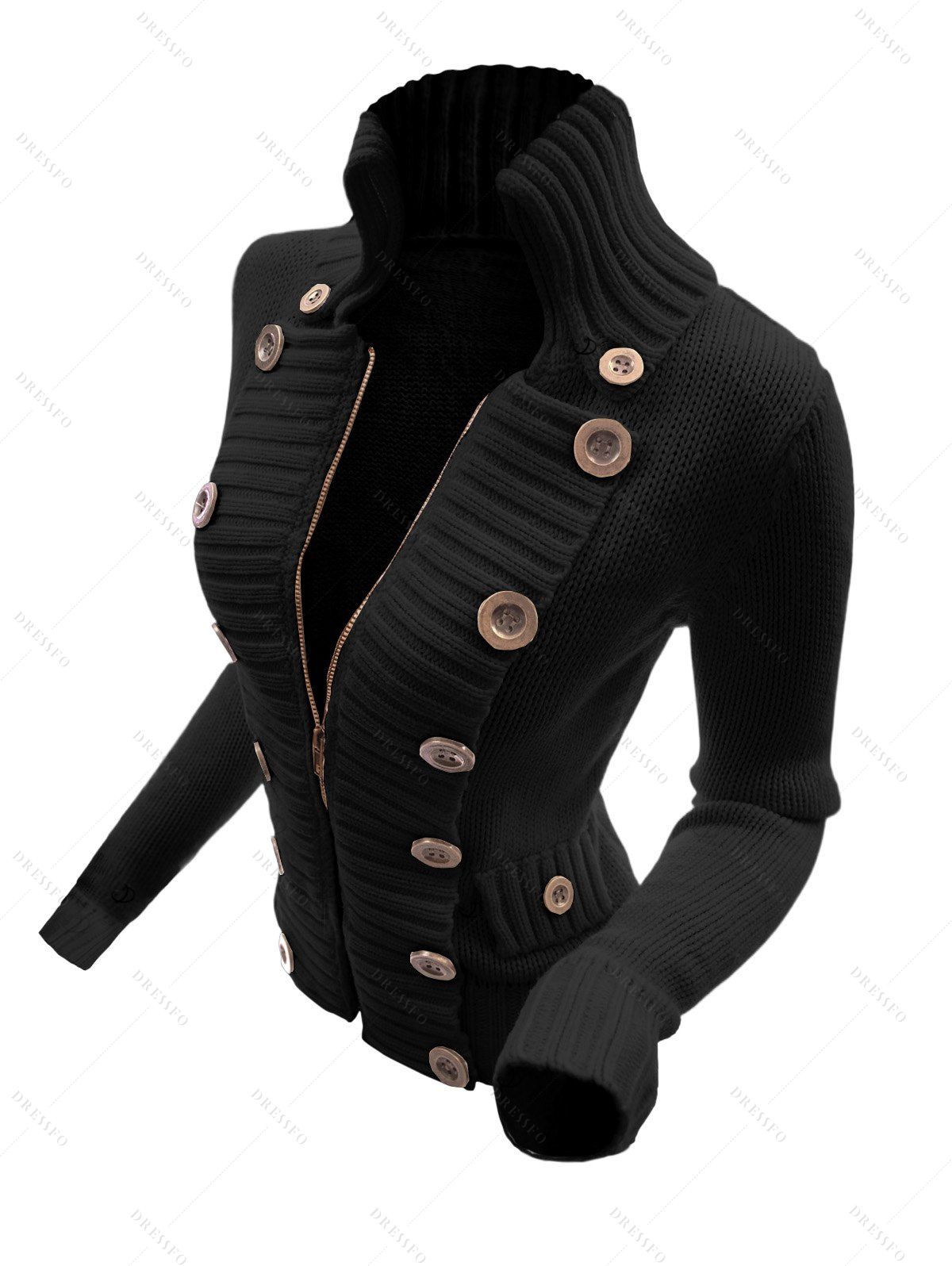 Pull-over uni à fermeture éclair et faux boutons, col montant