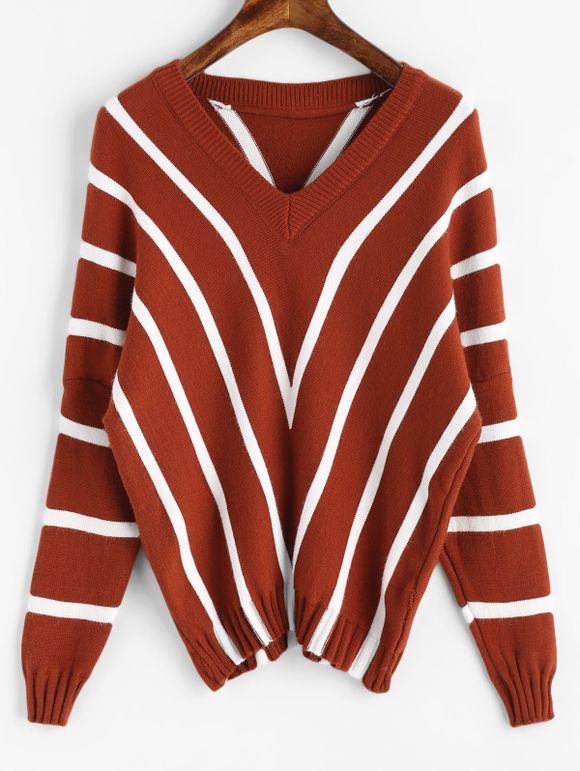 Pull rayé à manches chauve-souris et manches chauve-souris - Brique rouge ONE SIZE