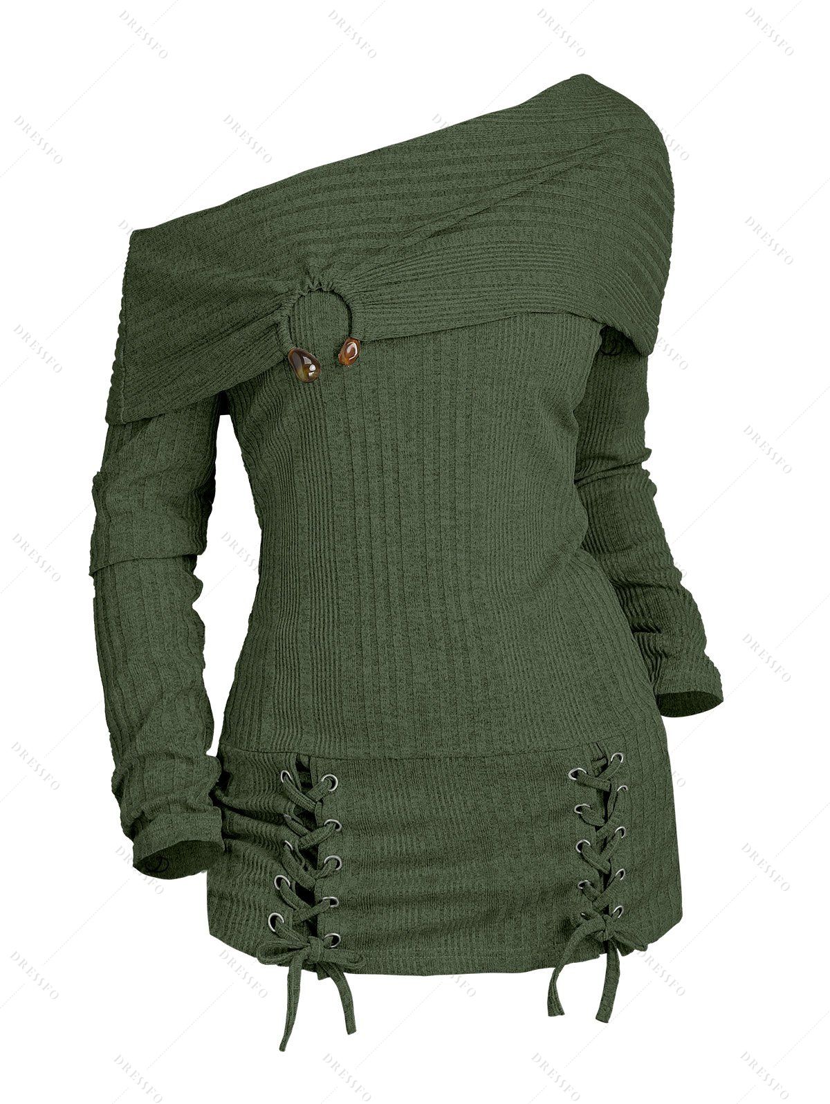Pull uni texturé à lacets et col asymétrique - Vert Armée XXL | US 14