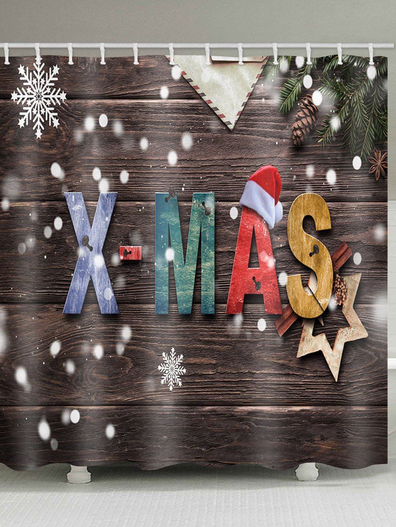 Rideau de Douche Imperméable Joyeux Noël Motif de Bois et de Flocon de Neige - marron foncé W71 X L79 INCH