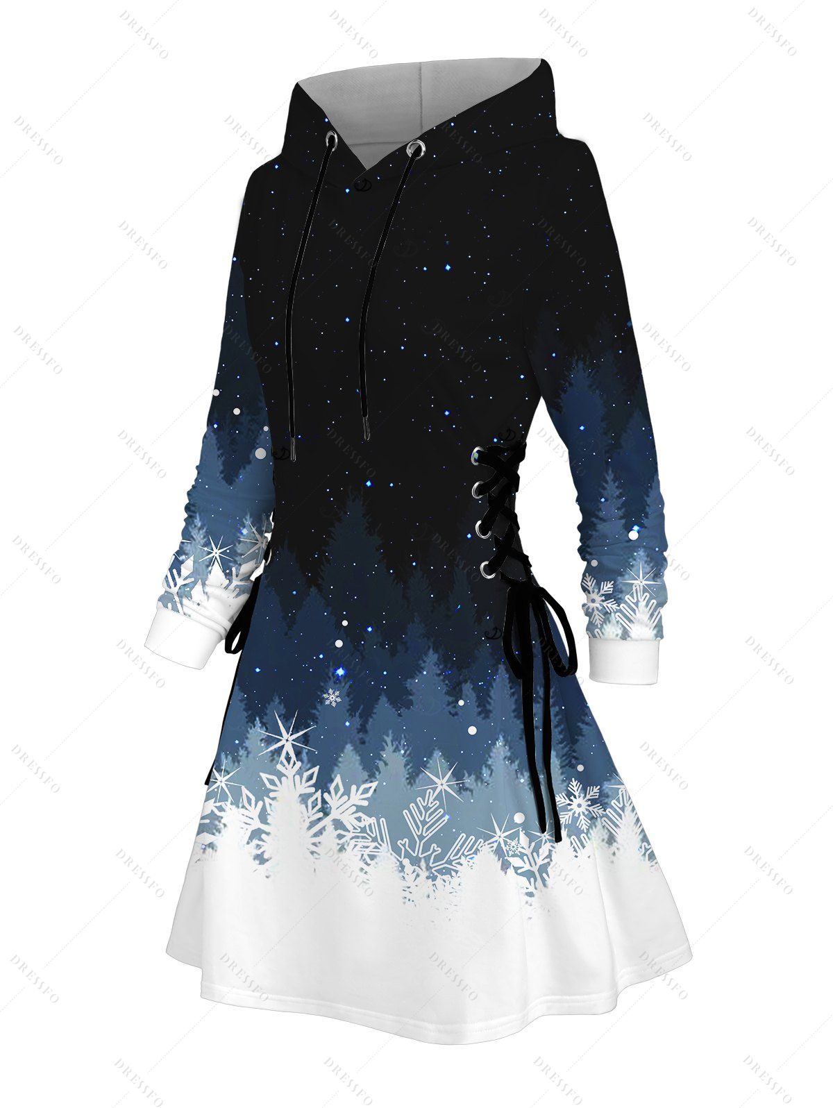 Robe à capuche de Noël à lacets et motif flocon de neige colorblock - Noir XXXXXL | US 20