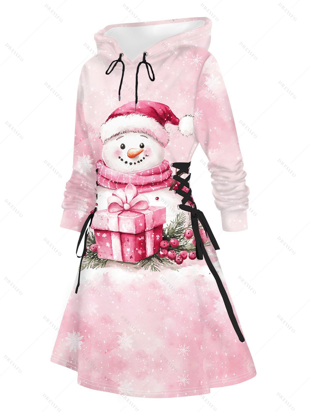 Robe à capuche de Noël à lacets, imprimé bonhomme de neige et flocon de neige, tie-dye - Rouge M | US 6