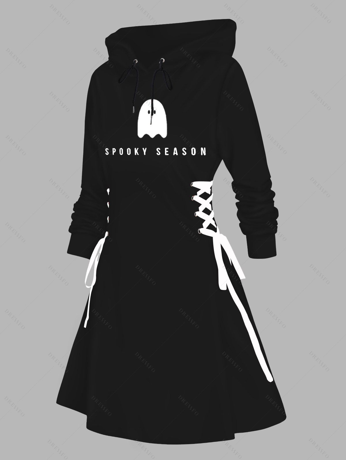 Robe à capuche imprimée fantôme d'Halloween avec cordons de serrage et lacets - Noir XXL | US 14