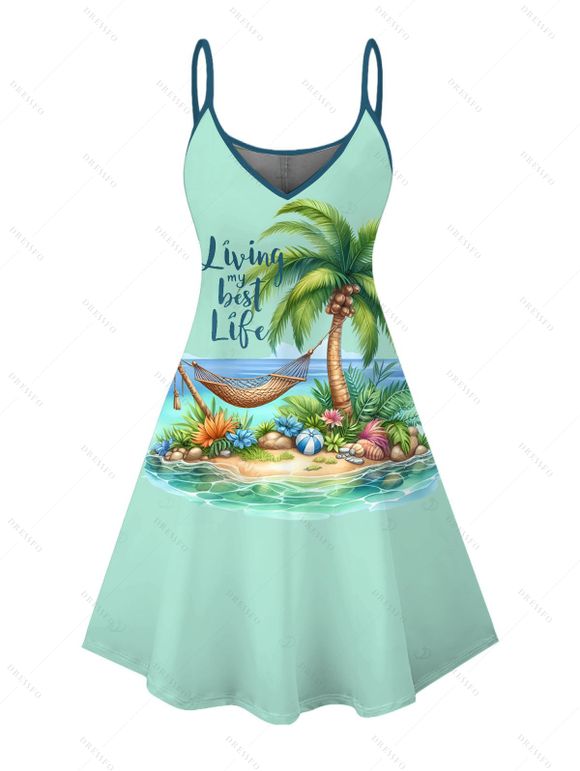 Robe de plage à imprimé paysage de cocotiers et bretelles spaghetti - Vert clair S | US 4
