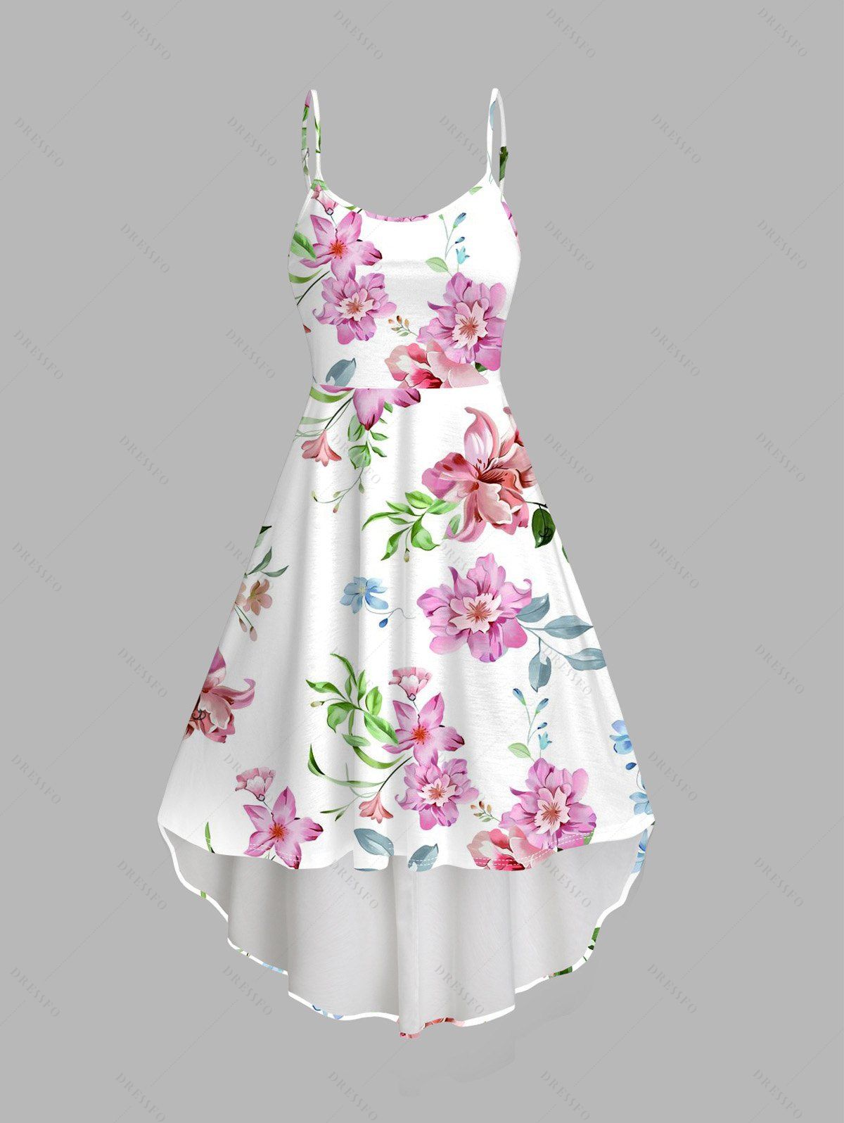 Robe de vacances aquarelle à motif floral jardin mélangé, robe asymétrique - Blanc XXL | US 14