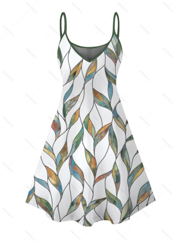 Robe de vacances à bretelles spaghetti et imprimé de feuilles colorées - Vert clair XXXXXL | US 20