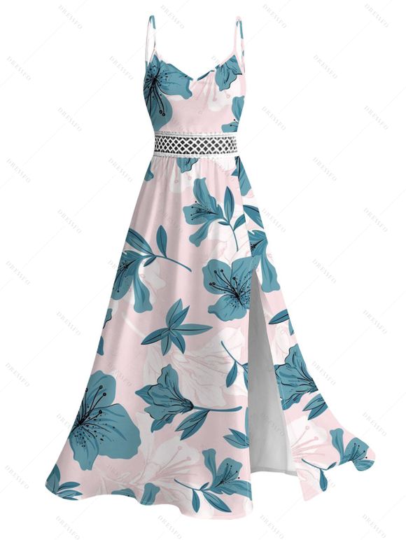 Robe de vacances en dentelle ajourée à imprimé floral azalée et fente - Rose clair XXXXXL | US 20