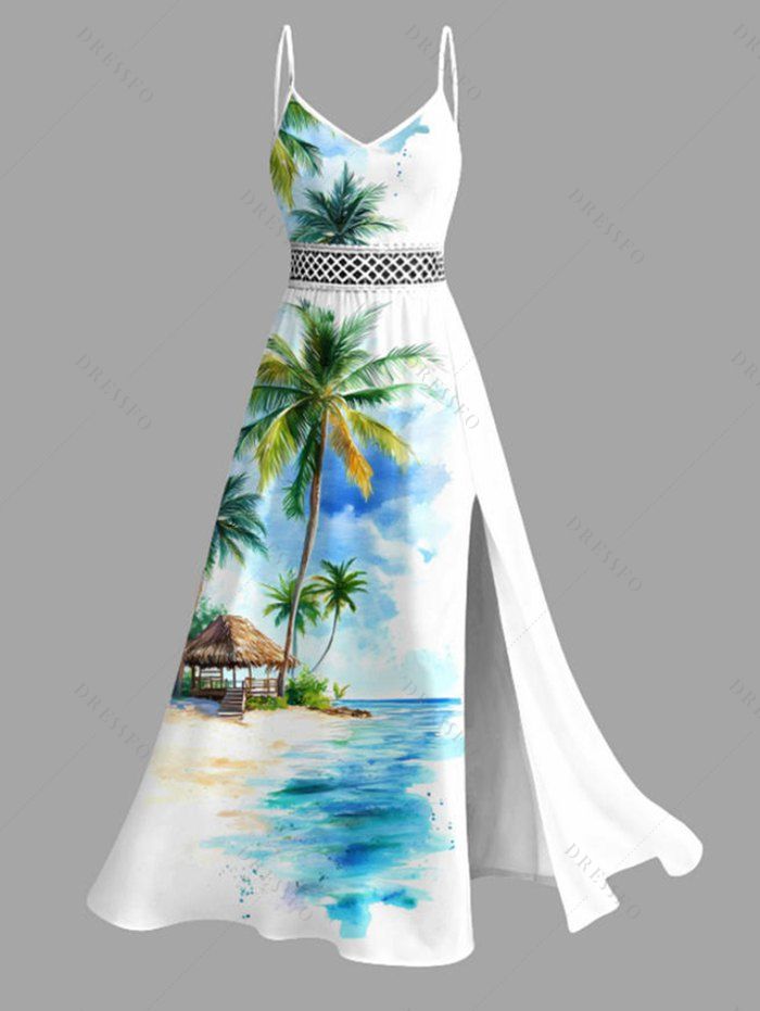 Robe de vacances à imprimé cocotier et fente - Bleu Ciel XXL | US 14