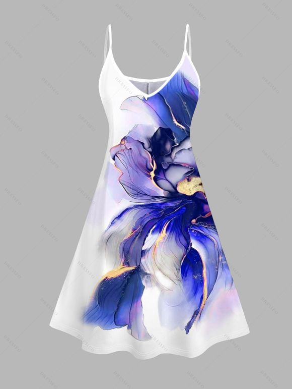 Robe de vacances à imprimé floral ombré et fines bretelles - Bleu profond S | US 4