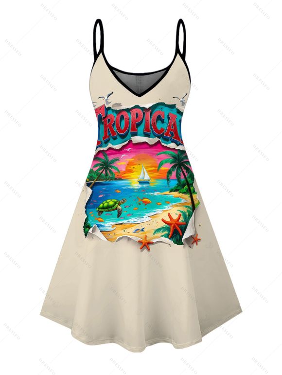 Robe de vacances à imprimé lettres et paysage tropical sur la plage