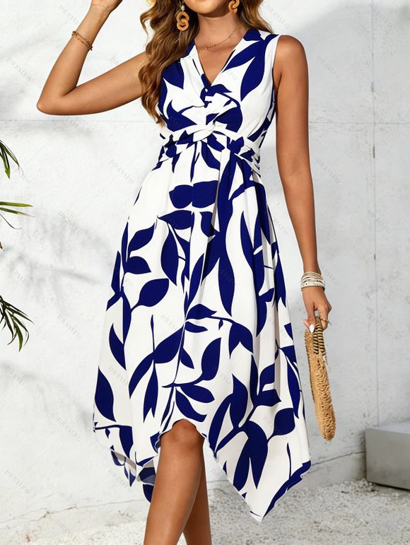 Robe de vacances élégante à col V asymétrique et coupe midi asymétrique