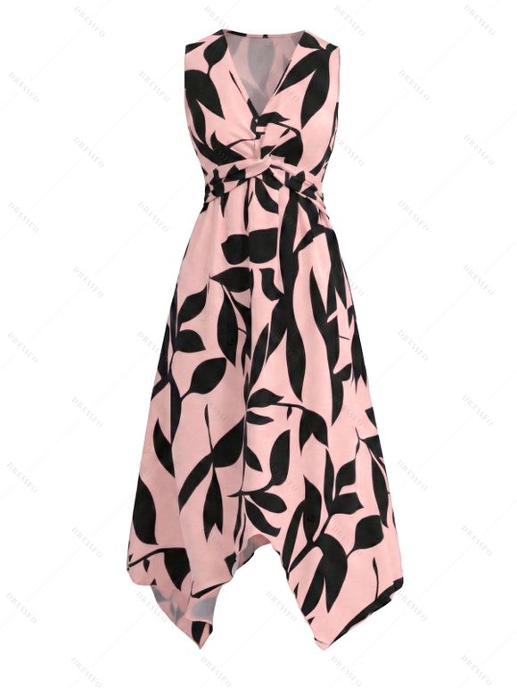 Robe de vacances élégante à col V asymétrique et coupe midi asymétrique - Rose clair L | US 8