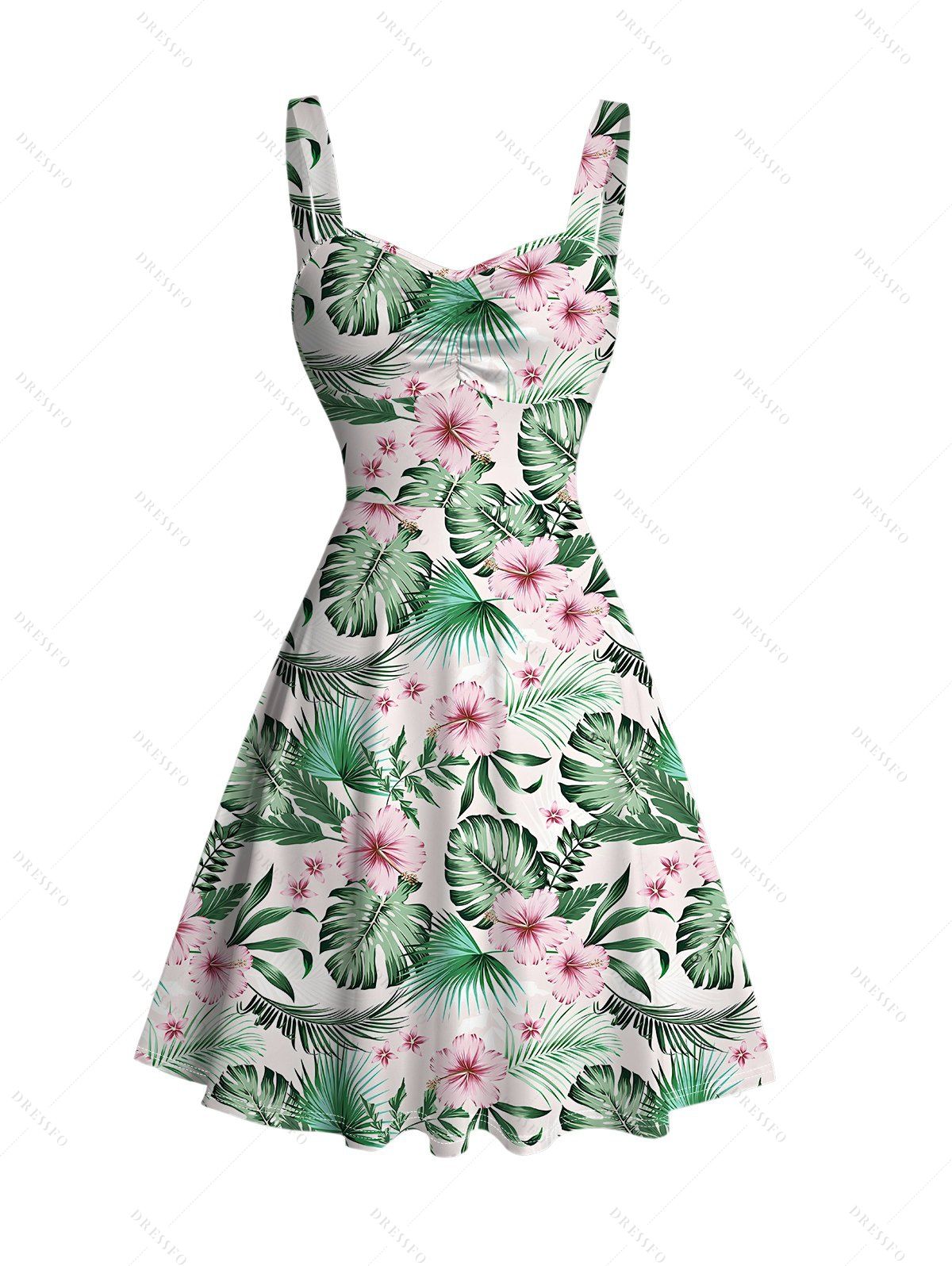 Robe de vacances mini froncée à imprimé floral et feuilles - Vert clair S | US 4