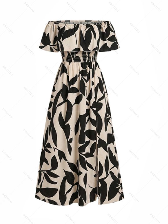 Robe de vacances à imprimé floral discret, épaules dénudées et fente - Noir XXL | US 12
