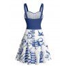 Robe de vacances à motif sirène, dauphin, navire, éléments océaniques, buste froncé, ceinture, col en cœur, ligne A, mini, décontractée - Bleu XXXXXL | US 20