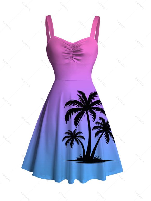 Robe de vacances pour la plage, imprimé cocotier, dégradé ombré, froncée