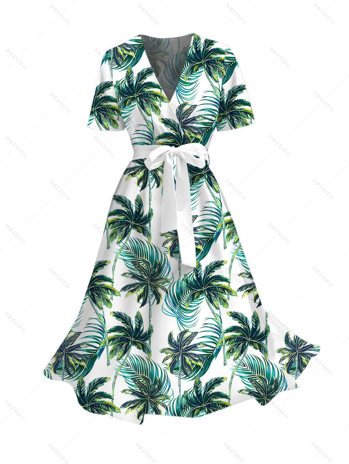 Robe de vacances pour la plage, robe à ceinture imprimée de cocotiers