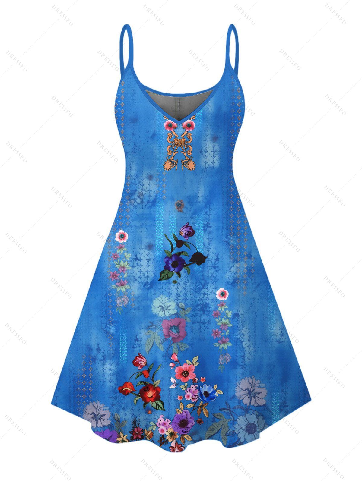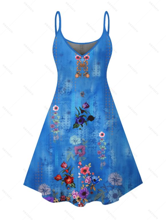 Robe de vacances style bohème à imprimé floral artistique et fines bretelles - Pers XXXXXL | US 20