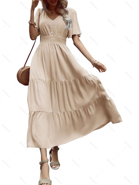 Robe de vacances unie à faux boutons et col en V, robe fatiguée - café lumière M | US 6