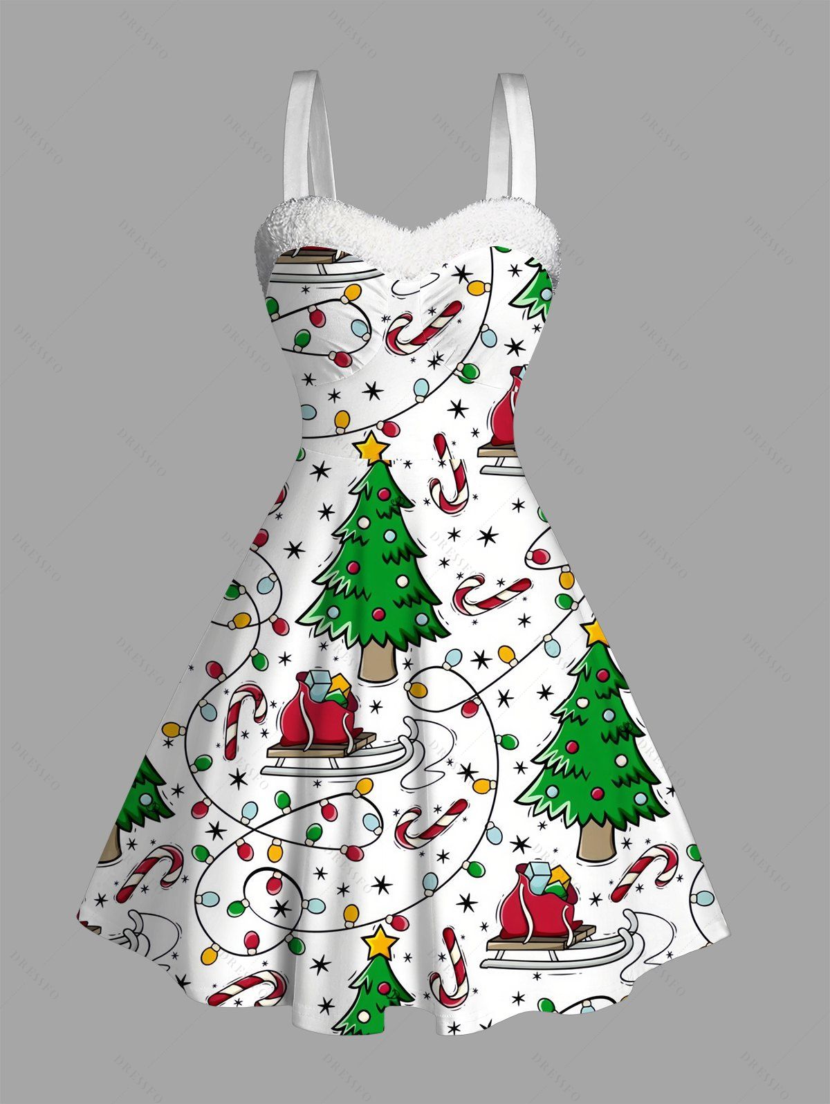 Robe en fausse fourrure avec guirlandes d'éclairs et imprimé flocons de neige - Blanc XXXXXL | US 20