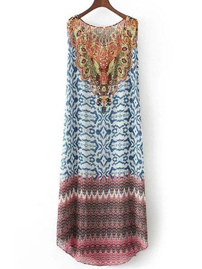 Robe imprimée Vintage Rhinestoned - Bleu clair S