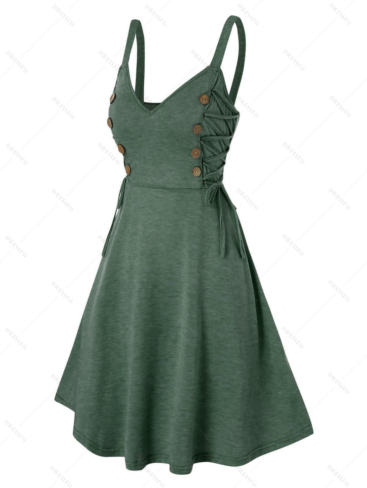 Robe Ligne A Boutonnée à Bretelle à Lacets Latérale