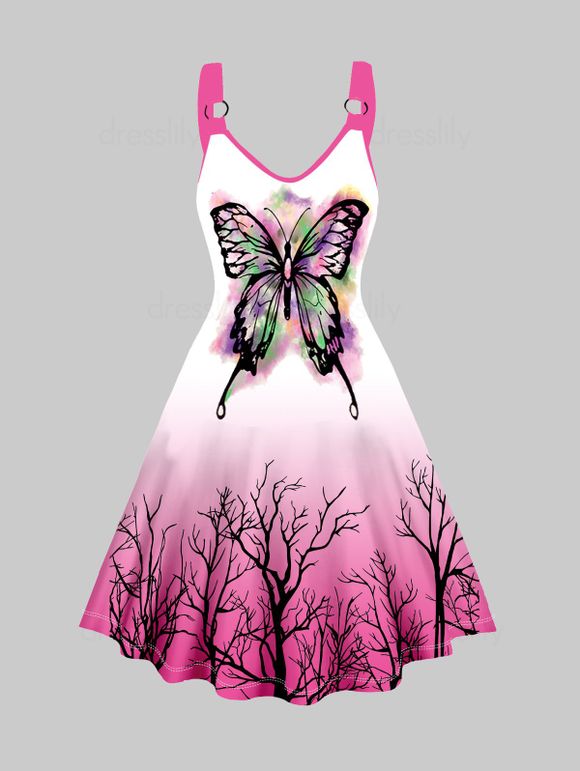 Robe Ligne A Décontractée Papillon et Arbre Anneau en O sans Manches - Rose clair S