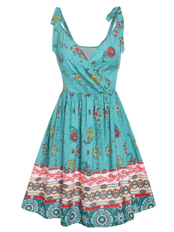 Robe Ligne A Superposée Fleurie à Epaule Nouée Style Bohémien à Dos Nu