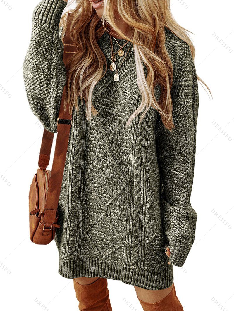 Robe pull vintage texturée, couleur unie, en maille torsadée - Vert Armée XXL | US 12