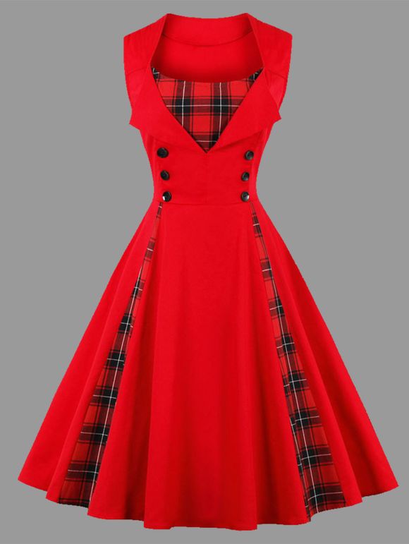 Description du produit: La robe de soirée vintage à taille plus est dotée d'un panneau à carreaux, d'une taille ornée de boutons et d'une coupe sans manches. Le motif à carreaux est frais et jamais démodé, l'embellissement des boutons met en valeur votre tour de taille, et la coupe sans manches montre votre belle épaule.