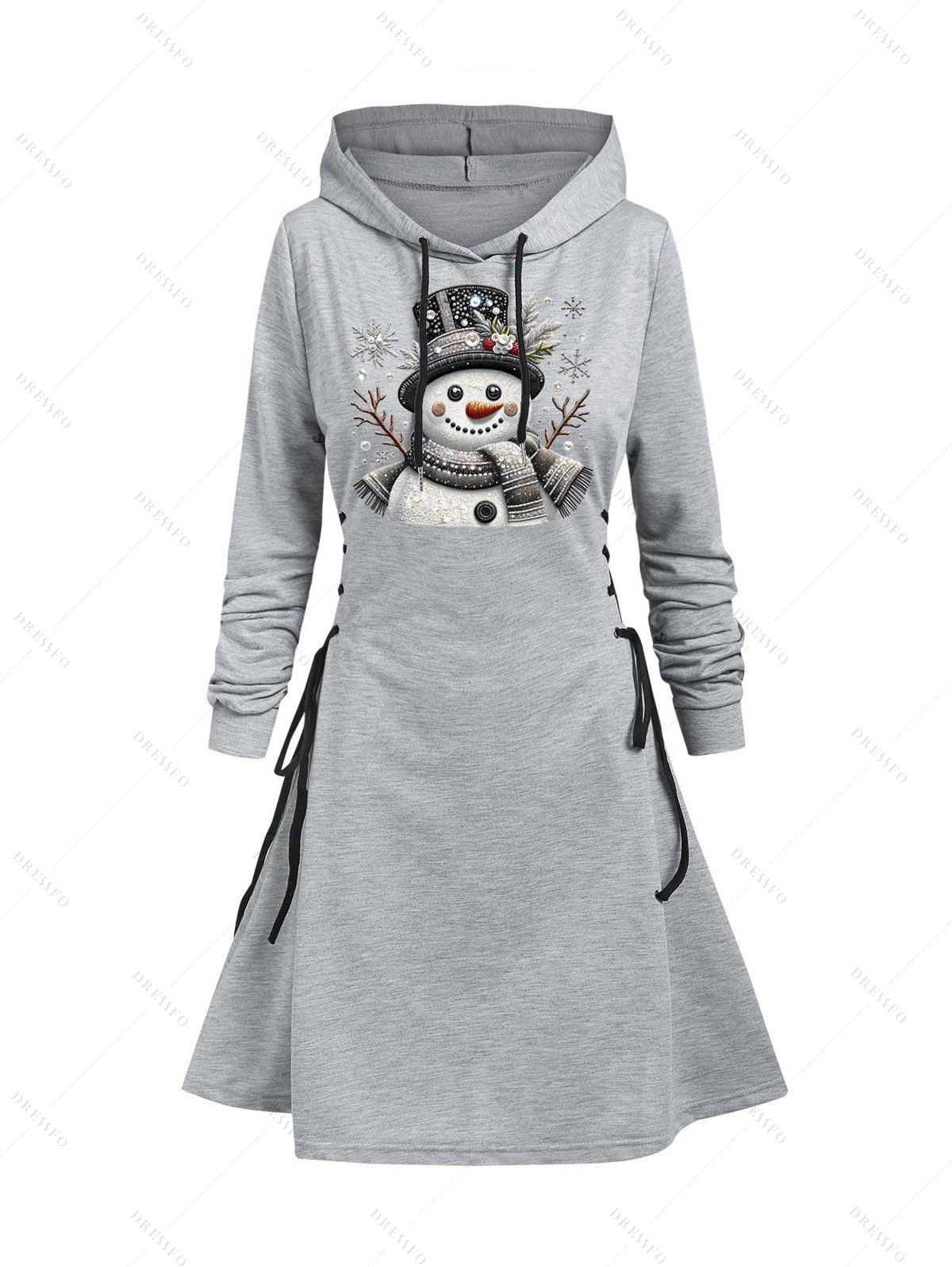 Robe sweat à capuche de Noël à imprimé bonhomme de neige et manches longues lacées - Gris Clair XXL | US 14