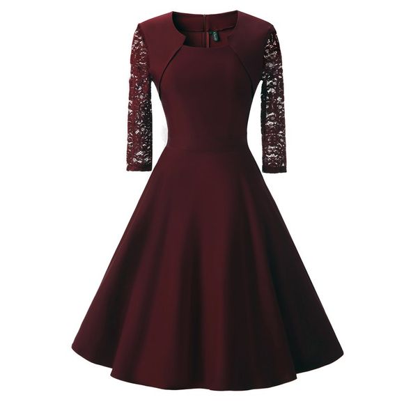 Robe trapèze à fleurs à col carré et à fleurs - Rouge vineux XL