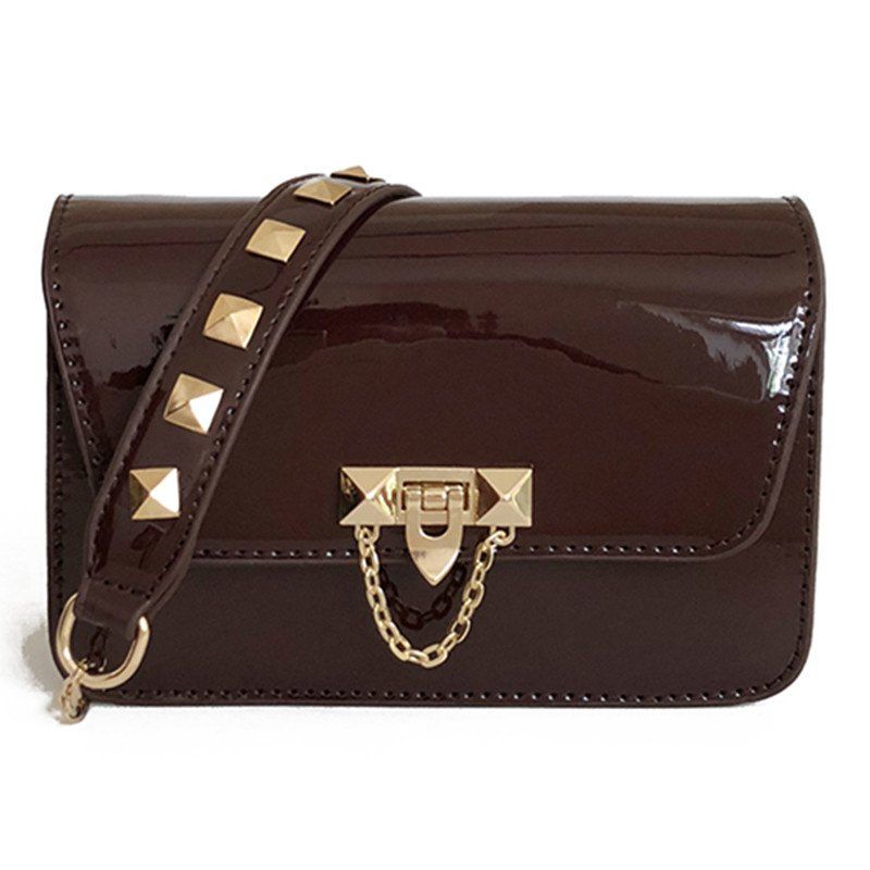 Sac à bandoulière en cuir verni à rivets - Brique Réfractaire