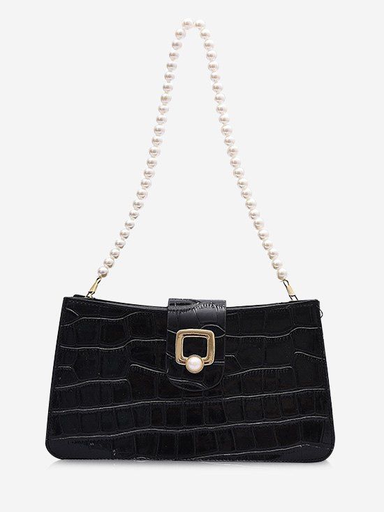 Sac à Bandoulière Texturé avec Fausse Perle à Bretelle - Noir