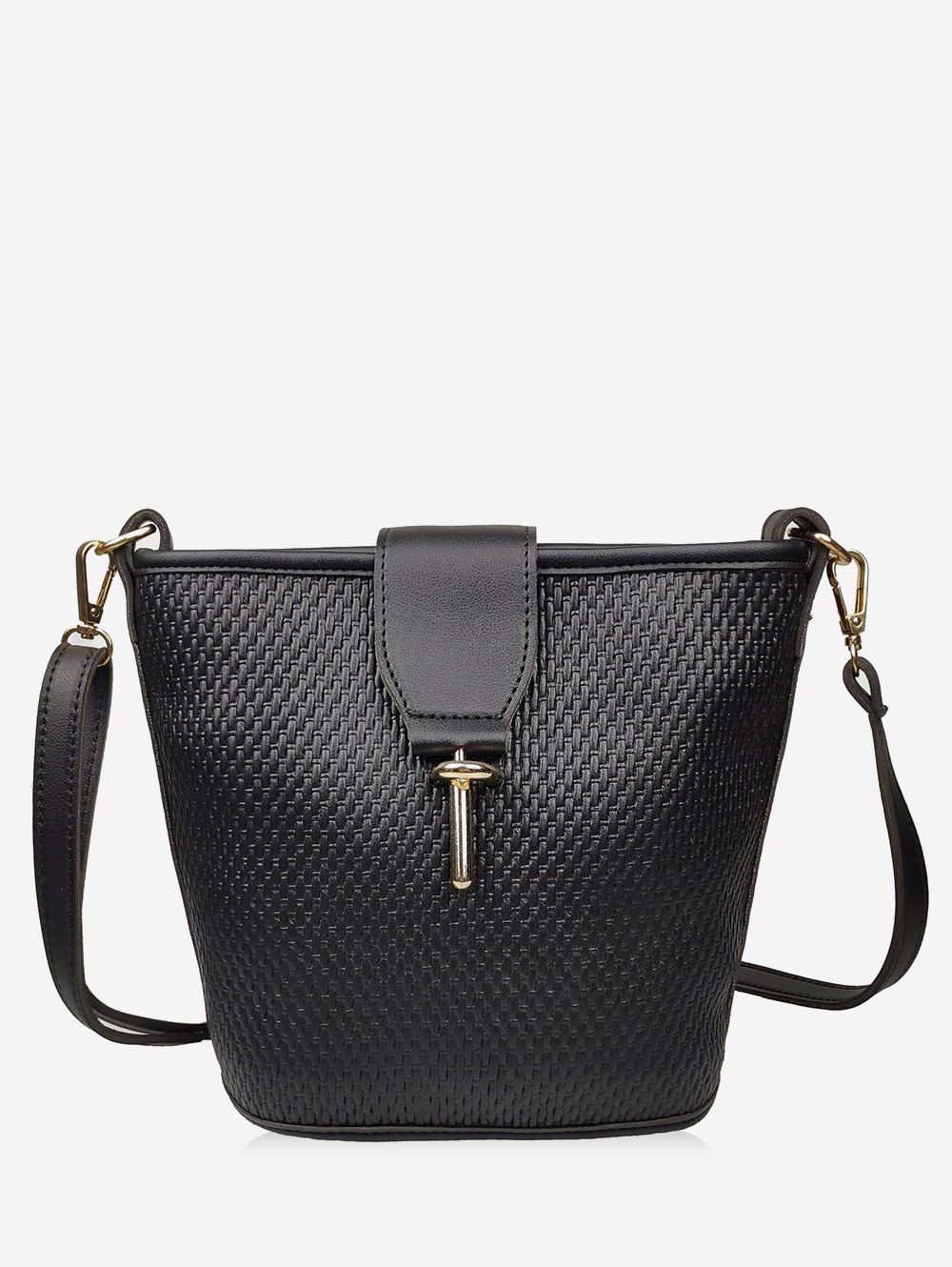Sac à Bandoulière Seau Tricoté Bambou en Fibre - Noir