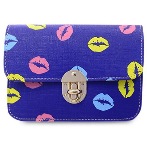 Trendy Chain and Lip Pattern Design Sac femme Crossbody - Bleu