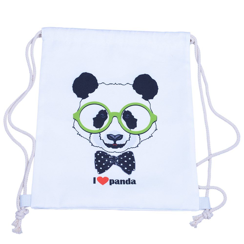Sac à dos chinois à cordon de serrage panda - Blanc