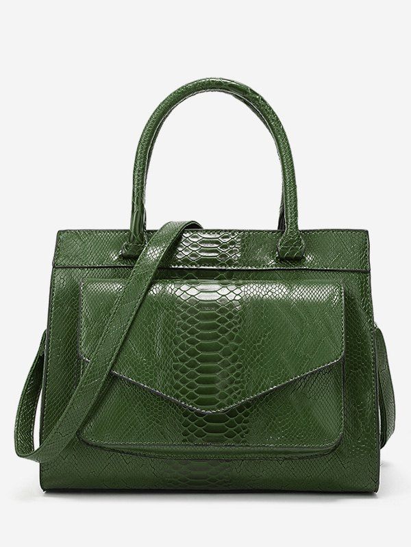 Sac Fourre-tout Rayé en Forme Carré avec Poche en Cuir - Vert Forêt Moyen