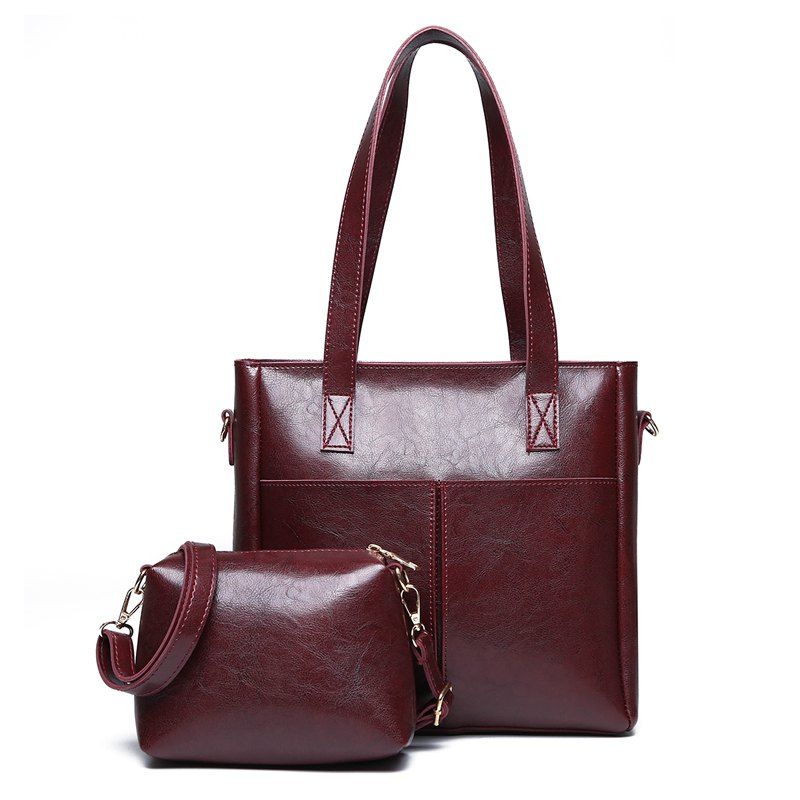 Sac à main en cuir de couleur unie - Rouge Vineux