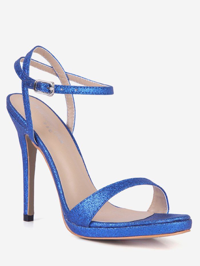 Sandales Lanière à Cheville à Talon Aiguille à Paillette - Bleu EU 35