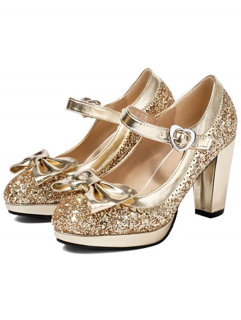 Party Sandals Sequined Bowknot Heart Ring Buckle Strap Chunky Heels Sandals