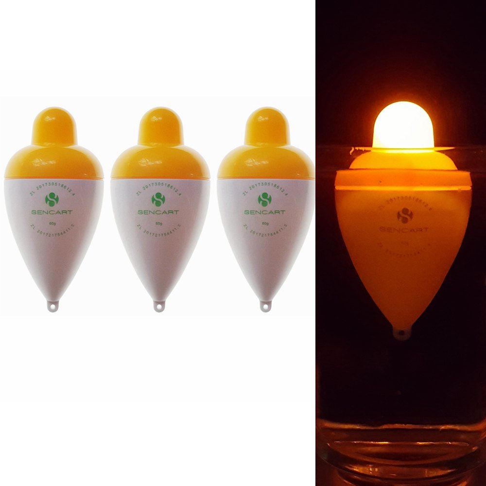 Sencart 3 PCS LED Pêche Lumineuse Tackle Flotteur Bouée Unités Flottabilité 60g + Batterie CR2032