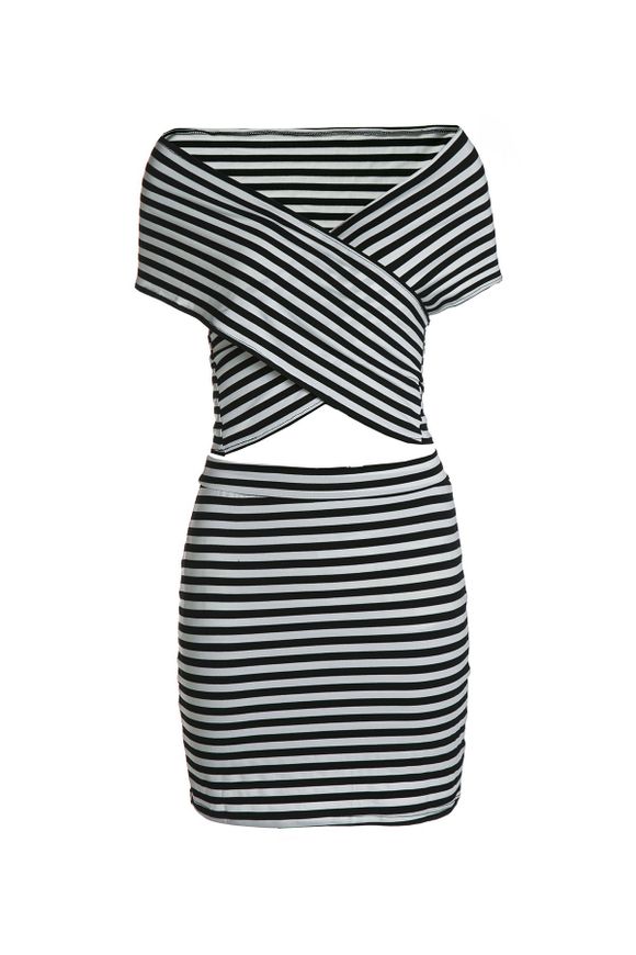 Sexy rayé à manches courtes T-shirt moulante + Jupe Sheathy Twinset pour les femmes - Blanc et Noir S