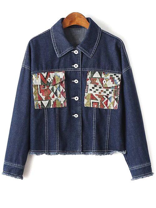 Shirt à manches longues col Imprimer poches Veste en jean - Bleu L