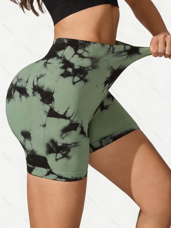 Short de yoga tie-dye push-up taille haute - Vert Armée XL | US 10