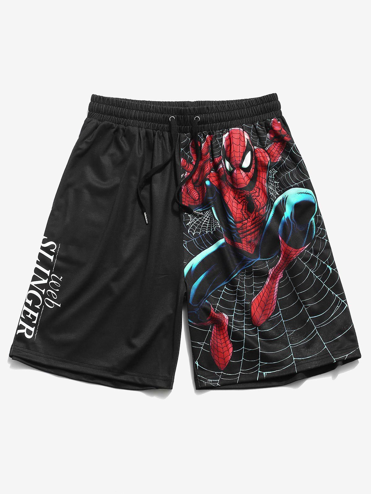 Peter Parker est toujours en route. Un graphique de Spider-Man est imprimé pour donner l'impression qu'il se balance au-dessus d'une grande toile d'araignée. Ce short a été conçu par Spider-Man : le Super Héros de la toile, avec un cordon à la taille, confortable et ample. Il se porte à la plage, avec un t-shirt basique pour les occasions quotidiennes.