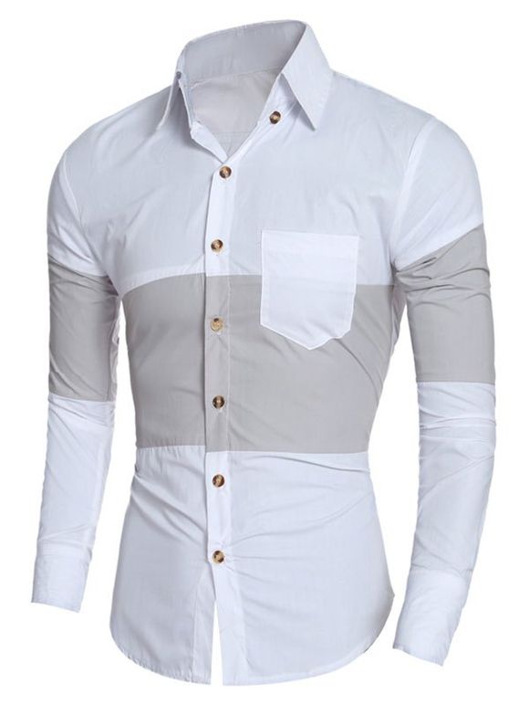 Chemise Maigre Ajustée Boutonnée en Blocs de Couleurs - Blanc M