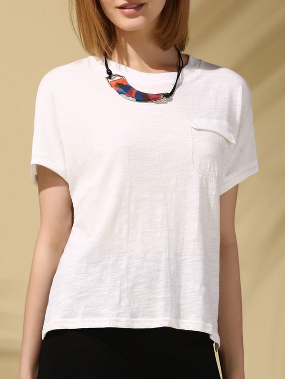 Slit Jewel Neck Pocket design manches courtes T s 'Casual femmes - Blanc ONE SIZE(FIT SIZE XS TO M)