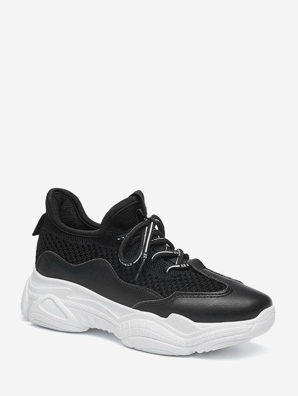 Baskets Décontractés Ourlet en Maille à Lacets Design - Noir EU 38
