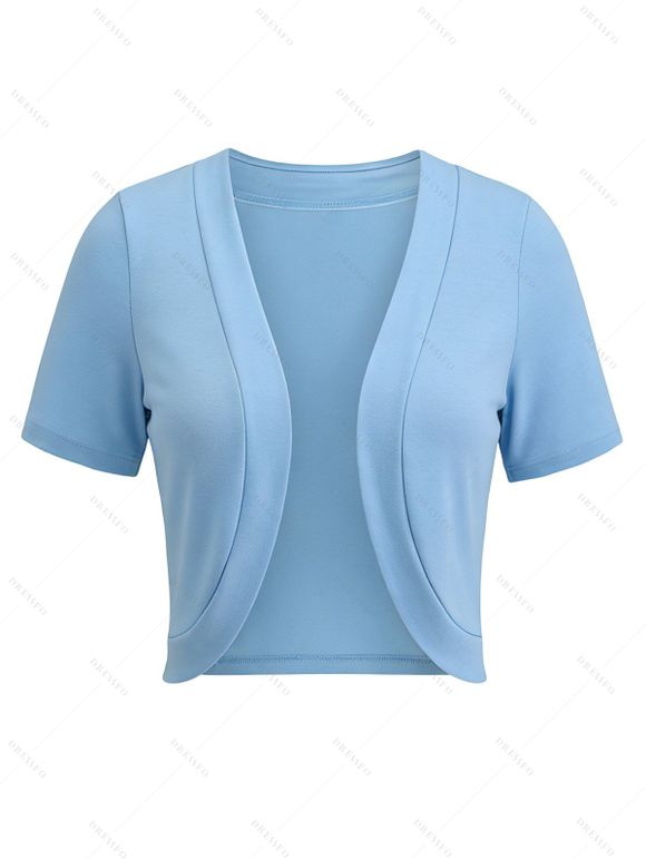 Solid Color Knit Cardigan Open Front Copped Top - Bleu clair XXL | US 14
